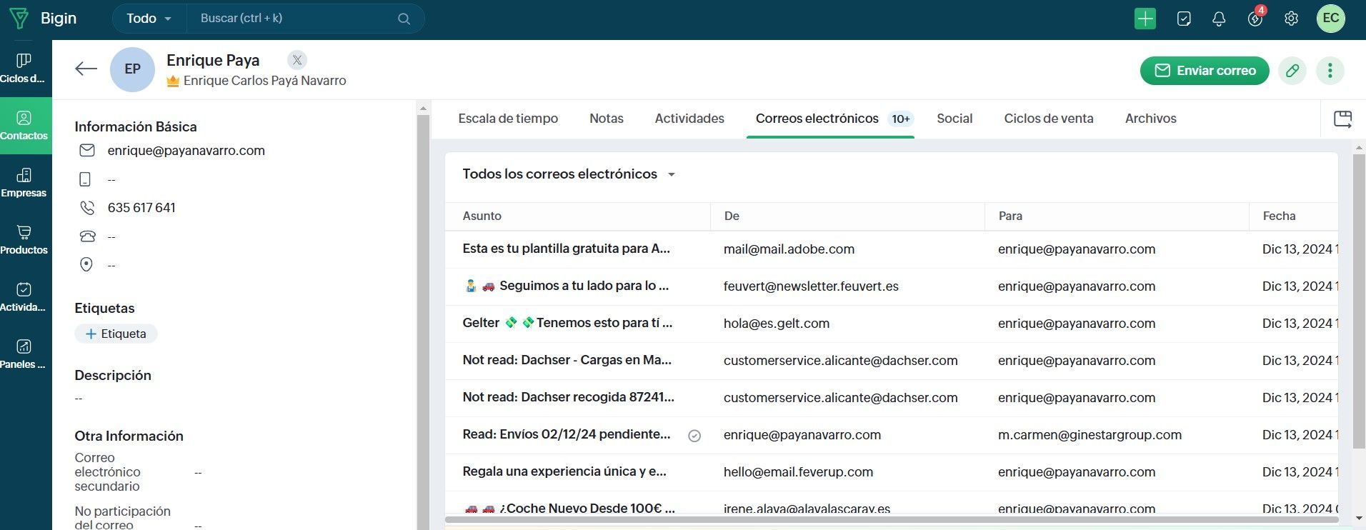- Qué necesitas hacer una comunicación masiva, Zoho Bigin te da la posibilidad.